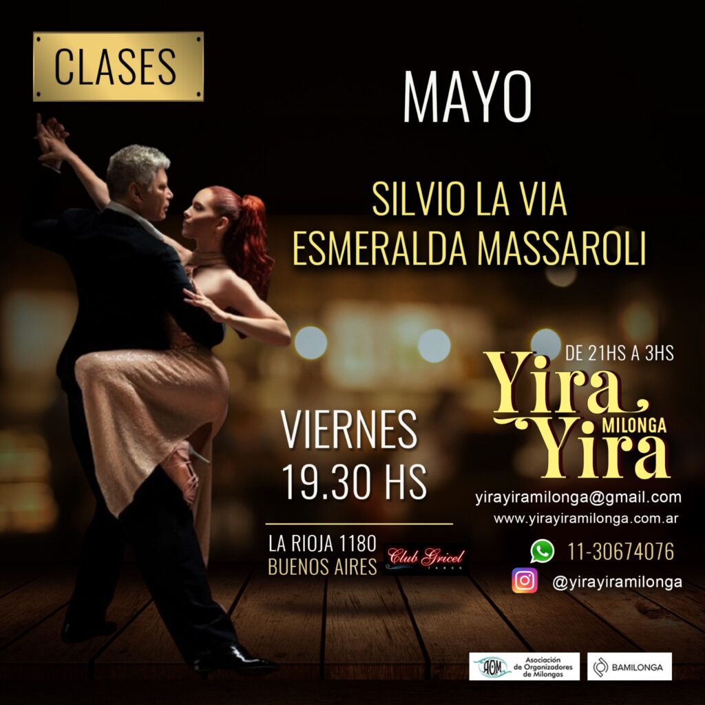Home Artistic attractions Our History Reservas Contact Home Artistic attractions Our History Reservas Contact YIRA YIRA MILONGA the pleasure of Tango in Buenos Aires Make Reservation 19,30 to 21 Hs. Tango Classes 21,00 to 03 Hs. Milonga! Next Upcoming attractions See all the shows La Rioja 1180Ciudad de Buenos Aires Live an unbeatable experience! The PlaceYira Yira Milonga takes place at El Nuevo Gricel, a mythical room in Buenos Aires. It has a wooden court, an air-conditioned environment and a buffet of homemade meals. Discounted parking in La Rioja 1132. Book a Table The Team Ana Bocutti y Daniel Blanco Organizers Sofia Deluchi Assistant Carlos “Pituco” Moreira Musicalizer Viviana Koehl Assistant Tasty homemade mealsThe best gastronomic option to share moments with your partner or friends. A menu of homemade meals of the high quality, at very affordable prices. Make Reservation We Are Waiting for You! BOOK A TABLE Or Call 54 911-3067-4076 Payment methods: cash - bank transfer - mercado pago Location La Rioja 1180 – Ciudad Autónoma de Buenos Aires. FRIDAY Milonga 21 PM to 03 AM Facebook Twitter Youtube Añade aquí tu texto de cabecera